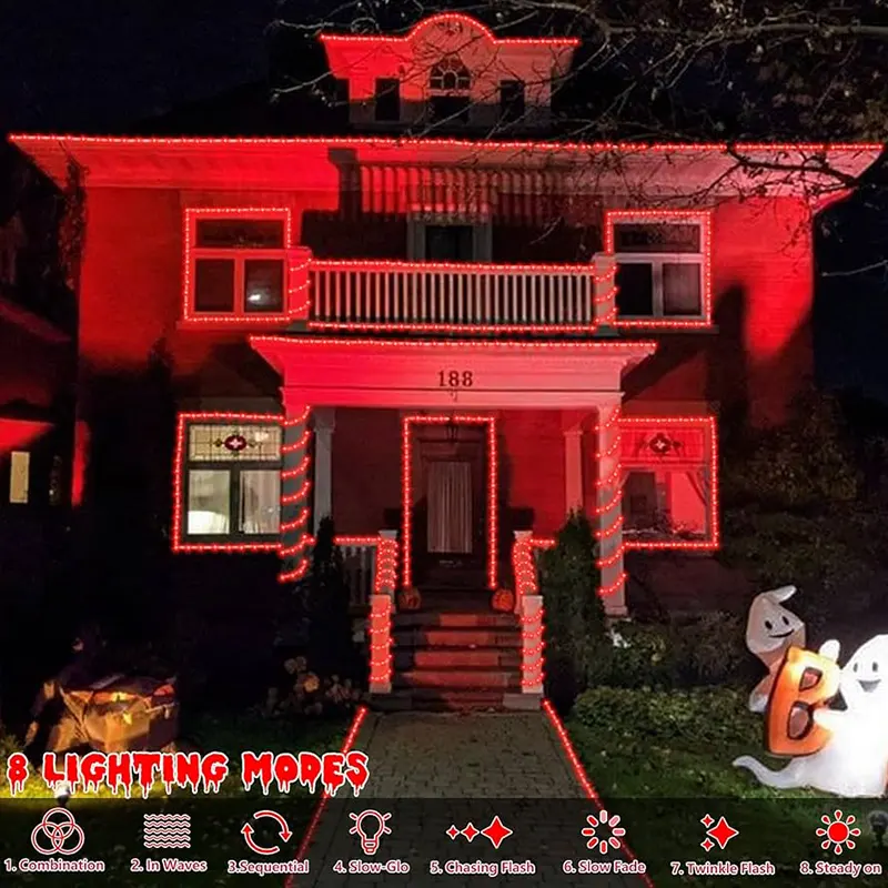 Spolja solarne crvene sijalice u crevu nude osam režima rada – od stalnog osvetljenja do treperavih efekata. Ova fleksibilnost omogućava da prilagodite osvetljenje ambijentu i raspoloženju, bilo da želite mirnu atmosferu ili dinamičnu svetlosnu predstavu.