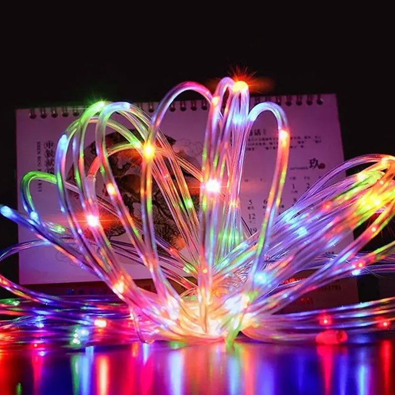 Izrađene od providnog PVC materijala sa LED diodama, LED solarna šarena crevasta rasveta je dugotrajna i otporna na spoljne uslove. IP zaštita osigurava da lampice rade čak i tokom kiše i snega, pa se mogu koristiti tokom cele godine.