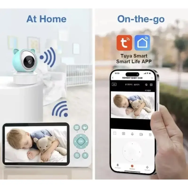 U kompletu dobijate samostalan 5“ IPS monitor koji radi bez telefona, za trenutni pregled u kući ili stanu. Kada ste van doma, pratite uživo preko popularne Tuya aplikacije – uključite PTZ rotaciju, proverite temperaturu, uključite uspavanku ili pričajte sa bebom, sve daljinski. Ova pametan bebi alarm kamera sistem sa aplikacijom podržava više jezika (8), jednostavna je i bez suvišnih koraka. 📱